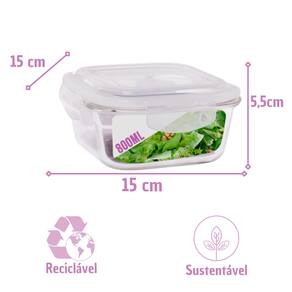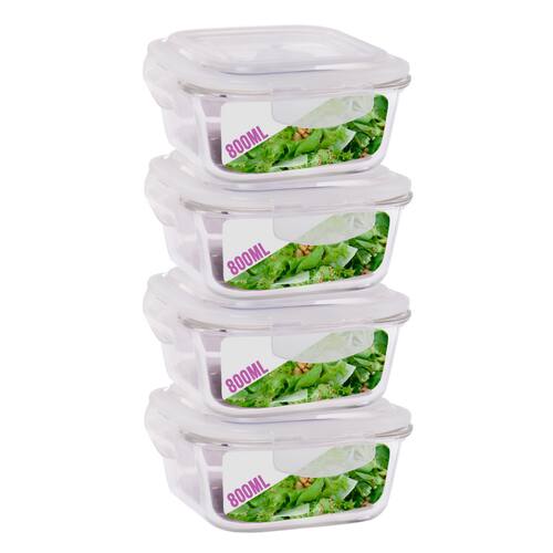Pote de Vidro 800 ml com Tampa Hermética Quadrado 4 Unidades