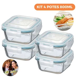 Nome do Produto: Kit 4 Potes de Vidro Herméticos Quadrados 800ml KIT COM 4 POTES DE VIDRO HERMÉTICOS QUADRADOS 800ML – AD