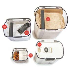 Facilidade de organização: quatro potes distintos que otimizam espaço em despensas, armários e bancadas.
