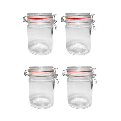 Kit 4 Potes Hermético Vidro Trava Metal 750ml Class Home
