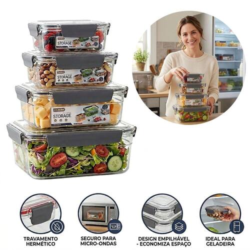 Kit 4 Potes Herméticos Retangular – Vedação Total e Organização