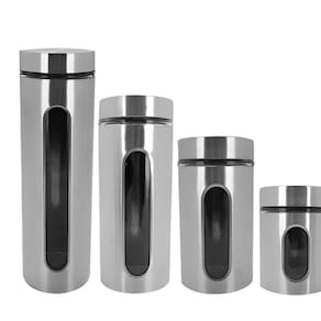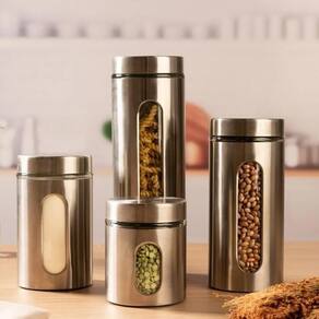 Mantenha sua cozinha organizada e seus alimentos sempre bem armazenados com o Kit de Porta Mantimentos em Inox com visor de vidro.