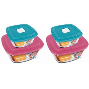 4 unidades Pote De Vidro Quadrado Com Tampa 300ml 500ml Marinex 2 tamanhos