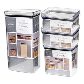 Kit 4 Potes Retangular Lumini 1951 Paramount Os Potes hermético Paramount Lumini é sinônimo de organização, requinte e bom gosto.