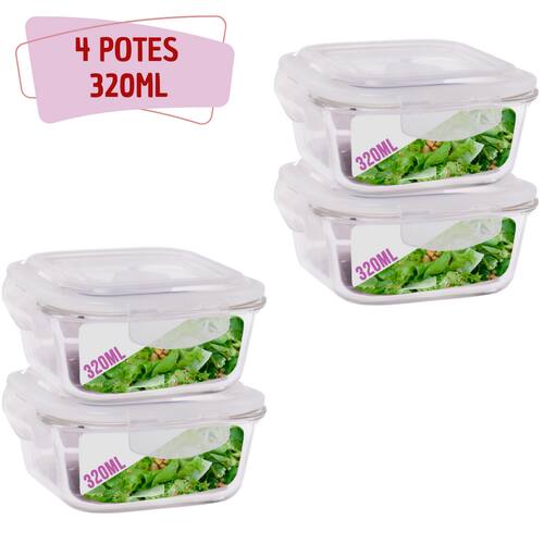 Pote de Vidro com Tampa Hermética Quadrado 320 ml 4 Unidades