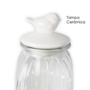 Kit 4 Potes Vidro Tampa Cerâmica Pássaro Coração 750/1500Ml