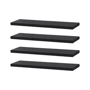 Kit 4 Prateleiras 40 x 10cm Preta Suporte Invisível. A prateleira Crie Fácil foi desenvolvida pensando em deixar o seu ambiente mais organizado e criativo de forma prática e simples. Produto produzido em MDP de alta qualidade garantindo resistência e durabilidade. A prateleira é acompanhada de suporte para fixação de embutir invisível. Cor: Preto. Tamanho: 40 x 10cm. Material: Madeira MDP. Fixação: embutir invisível. Instruções de uso e instalação: Para fácil limpeza, utilize pano levemente umedecido. Não utilizar produtos químicos ou abrasivos. Acompanha embalagem com as instruções de montagem e fixação.