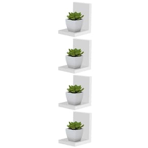 O Kit 4 Prateleiras em L 15 x 12cm Branco é a escolha perfeita para completar aquele cantinho especial da sua casa. Estas prateleiras pequenas brancas podem ser decoradas com pequenos vasos de plantas, estatuetas, porta retratos e outros objetos decorativos. Perfeitas para usar como porta troféus em quarto infantil. Muito versáteis, podem ser usadas para decoração de sala, quarto, escritório e até cozinha. As prateleiras Branco Buzios podem ser facilmente instaladas com fita dupla face. Não precisa furar a parede. Ideal para renovar sua decoração com facilidade e praticidade. Material: madeira MDP BP cor Branco com espessura 1,5cm. Peso do produto: 1,6kg. Indicação de uso: ideal para objetos decorativos leves. Importante: Os elementos decorativos das fotos não acompanham o produto (os vasos com plantas da foto não estão inclusos). Este anúncio inclui somente as prateleiras em madeira. Não está inclusa fita dupla face ou outra forma de fixação. A instalação do produto é por conta do cliente.