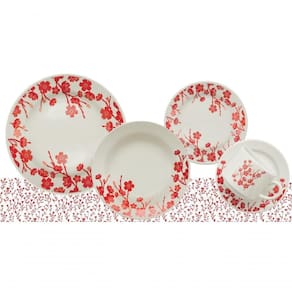 O aparelho de jantar Jardim Oriental da Biona foi buscar inspiração nas cerejeiras, árvores típicas dos países asiáticos. Uma louça que mistura a energia da cor vermelha com a suavidade da cor marfim.