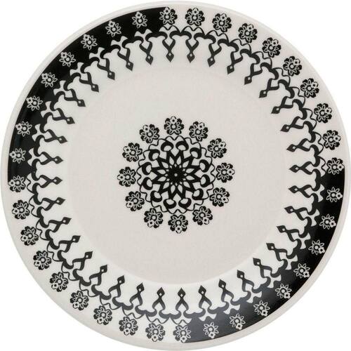A cor preta é básica e neutra, um verdadeiro curinga na hora de montar a mesa. Nessa louça, colocamos a cor preta numa estampa mais alegre e jovial, perfeita para quem prefere um formato de pratos tradicional com uma decoração mais alegre. A xícara preta, sem decoração, cria uma linda composição com as demais peças.