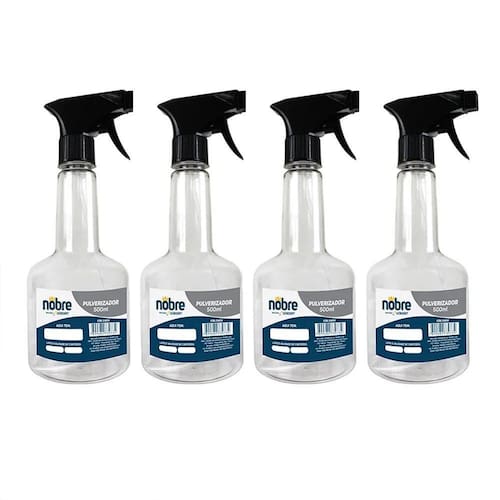 Kit 4 pulverizador borrifador 500ml - nobre Kit 4 pulverizador borrifador 500ml - nobreKit 4 pulverizador / borrifador nobre 500ml Capacidade: 500ml cada É resistente para carregar soluções de limpeza como álcool, sanitizantes, detergentes, limpa vidros, desinfetantes e limpadores gerais. Este acessório é bastante versátil para os afazeres diários de limpeza. Fabricado em polipropileno.