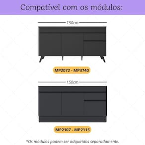 Diferenciais: * Design elegante que harmoniza com qualquer estilo de cozinha. * Produzido em ABS: material leve, durável e fácil de limpar. * Kit com 4 unidades. * Compatível com balcão 150cm da linha Veneza (Referências: MP2072 - MP3740 - MP2107 - MP2115). * Fácil instalação.