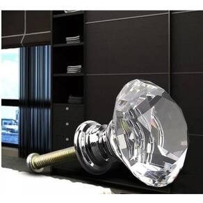 KIT 4 Puxadores de Cristal 30 mm Gaveta KIT 30 Puxadores de Cristal 30 mm Gaveta-Porta-Moveis Descrição A decoração se faz com pequenos detalhes. Esse é exatamente o caso dos puxadores de cristal, peças delicadas e com um visual muito glamouroso e sofisticado, capaz de transformar espaços e te ajudar completar todo o cômodo em beleza extraordinária. Os puxadores para gavetas podem ser facilmente instalados em móveis, como armários, cômodas, escrivaninhas, aparadores, entre outros. Com essa praticidade, eles podem ser trocados com a frequência que você precisar, sempre que quiser dar uma mudança naquele móvel sem vida na decoração. Adicione luxo à decoração de sua casa. Puxador, para furação única, em vidro translucido lapidado com acabamento cromado. Material: Cristal Diâmetro:30 mm 3 cm Altura: 2.8 cm/1.10 Diâmetro da base: 1,5 cm Comprimento Parafuso: 2,4 cm/0.12 Altura: 0.03 cmLargura: 0.03 cmComprimento: 0.03 cmPeso: 10 g