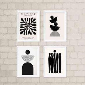 Com o Kit 4 Quadros Sala Abstratos Preto e Branco Matisse 24X18cm, você pode transformar sua sala, quarto, cozinha, escritório, área gourmet e muito mais. Ean: 7895941315374