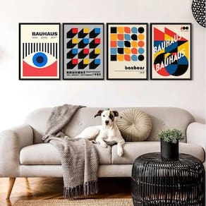 Kit 4 quadros abstratos posters bauhaus 33x24cm Moldura: madeira branca Informações do produto tire todas as suas dúvidas no descritivo abaixo: decoração para quarto, sala, cozinha, escritório, área gourmet e muito mais. Chega de paredes vazias medidas - cada peça tem 33x24cm a4 . Material do papel - papel fotográfico brilhante de altíssima resolução acabamento - todos os quadros são acompanhados de uma película de acetato para proteção da imagem. - os quadros são embalados de forma segura com plástico bolha com camada dupla de acordo com o tamanho dos quadros. Garantia - garantia de 3 meses. Meu quadro chegou. Como posso fixá-lo Você precisa apenas de um martelo e um prego, pois os quadros já vão acompanhados de penduradores. Esta é a forma mais indicada. Caso prefira, você pode utilizar uma fita dupla face neste caso, sugerimos de alta qualidade para evitar que descole e seu quadro caia . Como posso limpar meu quadro A limpeza é feita como um móvel comum da sua casa. Apenas um pano seco ou espanador são suficientes para tal