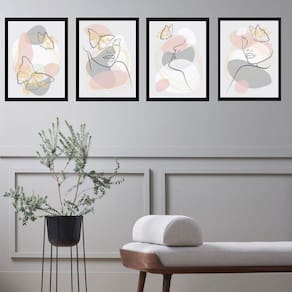 Kit 4 quadros borboletas abstratas rosa e cinza 24x18cm - com vidro Moldura: madeira branca Informações do produto tire todas as suas dúvidas no descritivo abaixo: decoração para quarto, sala, cozinha, escritório, área gourmet e muito mais. Chega de paredes vazias medidas - cada peça tem 24x18cm a5 . Material do papel - papel fotográfico brilhante de altíssima resolução acabamento - todos os quadros são acompanhados de vidro para proteção da imagem. - moldura em madeira maciça na cor preta ou branca conforme produto escolhido e pendurador . - os quadros são embalados de forma segura com plástico bolha com camada dupla de acordo com o tamanho dos quadros. Garantia - garantia de 3 meses. Meu quadro chegou. Como posso fixá-lo Você precisa apenas de um martelo e um prego, pois os quadros já vão acompanhados de penduradores. Esta é a forma mais indicada. Como posso limpar meu quadro A limpeza é feita como um móvel comum da sua casa. Apenas um pano seco ou espanador são suficientes para tal