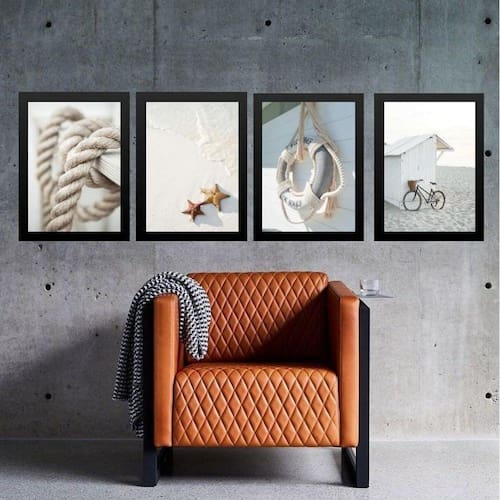 Kit 4 Quadros Coleção Praia Soft 33X24Cm