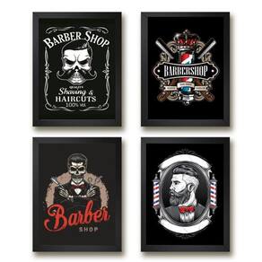Kit 4 Quadros Decorativos Para Barbearia 45X34Cm