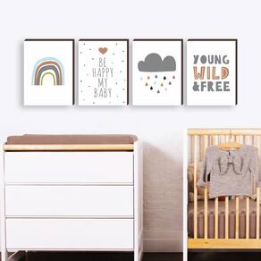 Kit 4 Quadros Decorativos Quarto de Bebê 30x40cm