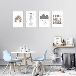 Kit 4 Quadros Decorativos Quarto de Bebê 30x40cm Características Gerais do Produto: Benefícios do produto: Fabricados com materiais de alta qualidade, não desbotam, alem de fácil instalação. Dimensões AxLxP CM : 40 X 30 X 3 Cada peça Formato: Retangular Produzido em: MDF e Impressão vinílica em altíssima definição Cor acabamento: Colorido : Este produto possui junto ao fabricante contra defeitos de fabricação Aplicação: Parede Acompanha o produto: 04 Quadros 04 Kit instalação : Este produto possui contra defeitos de fabricação Marca: Não Informado