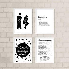 Kit 4 Quadros Divertidos Para Banheiro 33X24Cm