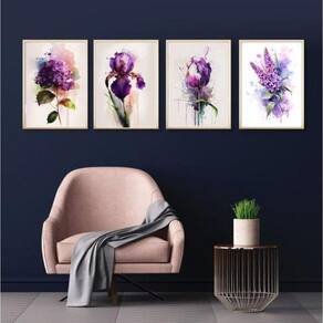 Kit 4 quadros florais roxos aquarela 45x34cm - com vidro Moldura: madeira branca Informações do produto tire todas as suas dúvidas no descritivo abaixo: decoração para quarto, sala, cozinha, escritório, área gourmet e muito mais. Chega de paredes vazias medidas - cada peça tem 45x34cm a3 . Material do papel - papel fotográfico brilhante de altíssima resolução acabamento - todos os quadros são acompanhados de vidro para proteção da imagem. - moldura em madeira maciça na cor preta ou branca conforme produto escolhido e pendurador . - os quadros são embalados de forma segura com plástico bolha com camada dupla de acordo com o tamanho dos quadros. Garantia - garantia de 3 meses. Meu quadro chegou. Como posso fixá-lo Você precisa apenas de um martelo e um prego, pois os quadros já vão acompanhados de penduradores. Esta é a forma mais indicada. Como posso limpar meu quadro A limpeza é feita como um móvel comum da sua casa. Apenas um pano seco ou espanador são suficientes para tal