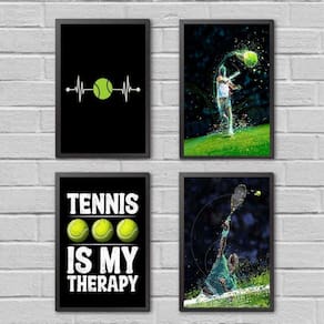 Kit 4 quadros jogadores de tênis 33x24cm - com vidro Moldura: madeira preta Informações do produto tire todas as suas dúvidas no descritivo abaixo: decoração para quarto, sala, cozinha, escritório, área gourmet e muito mais. Chega de paredes vazias medidas - cada peça tem 33x24cm a4 . Material do papel - papel fotográfico brilhante de altíssima resolução acabamento - todos os quadros são acompanhados de vidro para proteção da imagem. - moldura em madeira maciça na cor preta e pendurador . - os quadros são embalados de forma segura com plástico bolha com camada dupla de acordo com o tamanho dos quadros. Garantia - garantia de 3 meses. Meu quadro chegou. Como posso fixá-lo Você precisa apenas de um martelo e um prego, pois os quadros já vão acompanhados de penduradores. Esta é a forma mais indicada. Como posso limpar meu quadro A limpeza é feita como um móvel comum da sua casa. Apenas um pano seco ou espanador são suficientes para tal