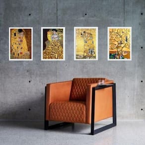Kit 4 quadros obras de gustav klimt 45x34cm - com vidro Moldura: madeira branca Informações do produto tire todas as suas dúvidas no descritivo abaixo: decoração para quarto, sala, cozinha, escritório, área gourmet e muito mais. Chega de paredes vazias medidas - cada peça tem 45x34cm a3 . Material do papel - papel fotográfico brilhante de altíssima resolução acabamento - todos os quadros são acompanhados de vidro para proteção da imagem. - moldura em madeira maciça na cor preta ou branca conforme produto escolhido e pendurador . - os quadros são embalados de forma segura com plástico bolha com camada dupla de acordo com o tamanho dos quadros. Garantia - garantia de 3 meses. Meu quadro chegou. Como posso fixá-lo Você precisa apenas de um martelo e um prego, pois os quadros já vão acompanhados de penduradores. Esta é a forma mais indicada. Como posso limpar meu quadro A limpeza é feita como um móvel comum da sua casa. Apenas um pano seco ou espanador são suficientes para tal