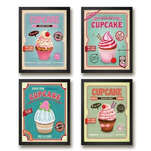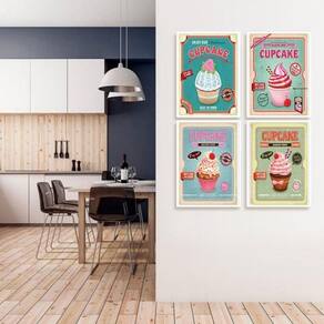 Kit 4 quadros para cozinha - cupcakes 45x34cm Cor: moldura branca Informações do produto tire todas as suas dúvidas no descritivo abaixo: decoração para quarto, sala, cozinha, escritório, área gourmet e muito mais. Chega de paredes vazias. Medidas - cada peça tem 45x34cm a3 . Material do papel - papel fotográfico brilhante de altíssima resolução acabamento - todos os quadros são acompanhados de uma película de acetato para proteção da imagem. - os quadros são embalados de forma segura com plástico bolha com camada dupla de acordo com o tamanho dos quadros. Garantia - garantia de 3 meses. Meu quadro chegou. Como posso fixá-lo Você precisa apenas de um martelo e um prego, pois os quadros já vão acompanhados de penduradores. Esta é a forma mais indicada. Caso prefira, você pode utilizar uma fita dupla face neste caso, sugerimos de alta qualidade para evitar que descole e seu quadro caia . Como posso limpar meu quadro A limpeza é feita como um móvel comum da sua casa. Apenas um pano seco ou espanador são suficientes para tal