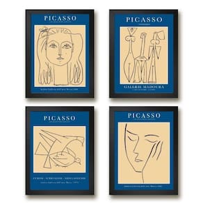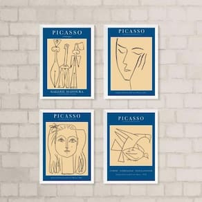 Kit 4 Quadros Picasso 24x18cm - Vidro e Moldura Branca
