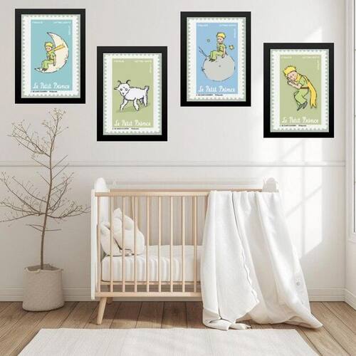 Kit 4 quadros quarto infantil menino pequeno príncipe 45x34cm - com vidro Cor: moldura branca Informações do produto tire todas as suas dúvidas no descritivo abaixo: decoração para quarto, sala, cozinha, escritório, área gourmet e muito mais. Chega de paredes vazias medidas - cada peça tem 45x34cm a3 . Material do papel - papel fotográfico brilhante de altíssima resolução acabamento - todos os quadros são acompanhados de vidro para proteção da imagem. - moldura em madeira maciça na cor preta ou branca conforme produto escolhido e pendurador . - os quadros são embalados de forma segura com plástico bolha com camada dupla de acordo com o tamanho dos quadros. Garantia - garantia de 3 meses. Meu quadro chegou. Como posso fixá-lo Você precisa apenas de um martelo e um prego, pois os quadros já vão acompanhados de penduradores. Esta é a forma mais indicada. Como posso limpar meu quadro A limpeza é feita como um móvel comum da sua casa. Apenas um pano seco ou espanador são suficientes para tal