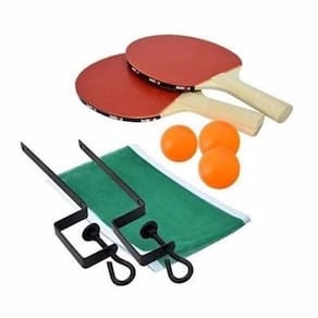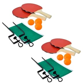 Itens do kit: 4 raquetes, 6 bolinhas laranja e 2 redes completas Composição: Plástico, madeira e borracha Cor da Borracha da Raquete: Um lado com a borracha vermelha e o outro lado com borracha preta Medidas total da Raquete: 25 cm de altura x 14,5 cm de comprimento x 0,9 cm de largura Cabo da Raquete: 10 cm de altura x 3 cm de comprimento x 2,3 cm de largura Indicação de uso: Condomínios, Clubes, Salões de jogos, etc.