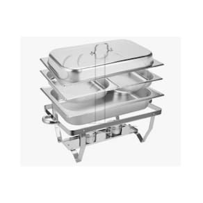 Benefícios para o usuário do kit com 4 rechauds retangulares 13 litros: Alta capacidade e versatilidade: Ideal para servir grandes volumes de alimentos em buffets, eventos ou restaurantes, com cubas divididas para maior organização dos pratos.