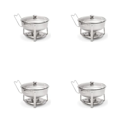 Kit 4 Rechaud Redondo 5l Banho Maria Aço Inox Suporte Tampa