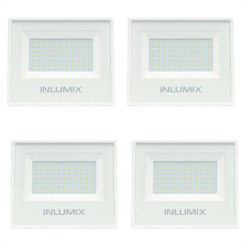 Kit 4 Refletor Holofote de Led 50W Branco Frio 6500K Branco Características Gerais do Produto: Benefícios do produto: Produzido com materiais de qualidade, economia de energia e design slim. Dimensões AxLxP CM : 11,5 X 13 X 2,5 Formato: Retangular Cor da luz: 6500K - Branco Frio Produzido em: Alumínio, Aço, Vidro e Componentes Eletrônicos Voltagem: Autovolt em 110v e 220V Alimentação: Energia elétrica Cor acabamento: Branco Potência: 50W Fluxo luminoso: 4000 Lumens Eficiência luminosa: 80 Lm/W IRC: 80 Ângulo de abertura: 120 : 1 ano junto ao fabricante Aplicação: Externo Vida útil: 20.000 horas Acompanha lâmpada: Não necessita, LED já integrado Grau de proteção: IP65 Ajuste de intensidade Dimerizar : Não Acompanha o produto: 04 Refletor Led : 1 ano junto ao fabricante Marca: Não Informado Ean: 7908028586960