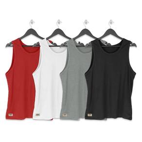 Feitas com tecido de algodão macio e resistente, as regatas deste kit são ideais para quem busca peças confortáveis e duráveis. Com quatro unidades nas cores vermelha, cinza, branco e preto, você terá opções versáteis para usar em diferentes momentos.