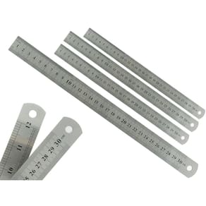 Kit Com 4 Réguas Metal Leve De Aço Inoxidável Tamanho 30 Cm Marcação Baixo Relevo Escolar Escritório Engenheiro