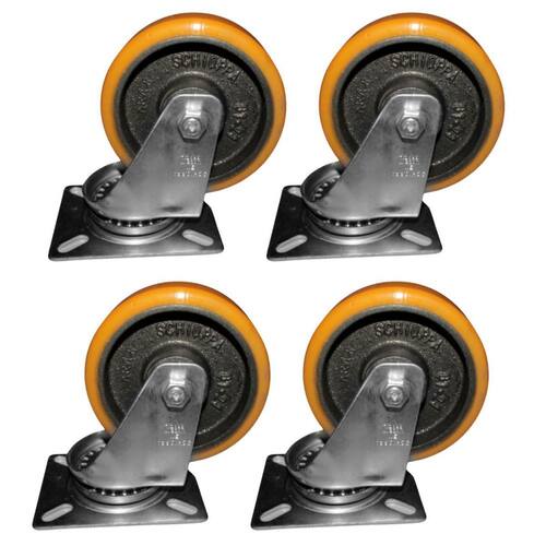 Kit com unidades de rodas 514 ferro com poliuretano placa giratório reforçadoCada roda suporta 300kgBenefícios:- boa mobilidade;- baixo ruído;- maciez e conforto;- não marca o piso.Indicação de uso:- moveis, design, indústrias, carrinhos, armários, equipamentos de som, guarda roupas, carrinhos industriais, freezers, geladeiras, mesas, vasos, etc.Indicação de pisos para uso:pisos porcelanatos, cerâmicas de resistência, empresas, fábricas, etc.Especificações:- anti-risco;- reforçado;- anti-ruído;materiais:- roda: ferro com poliuretano;- estrutura: aço.Conteúdo da embalagem: rodas 514 ferro com poliuretano placa giratóriogarantia do vendedor: 90 dias