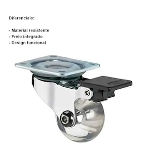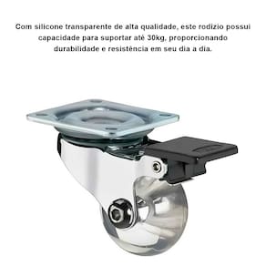 Certifique-se de que o peso do móvel está dentro da capacidade de 30kg por rodízio.Verifique o funcionamento do freio após a instalação para maior segurança.Mantenha as rodas limpas para garantir um deslizamento suave.Ficha Técnica: