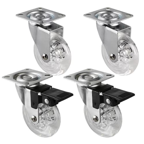 - Silicone transparente - Para aplicações gerais - Dimensões ; 35x42x42mm - 2 Rodízio Com trava - 2 Rodízio Sem trava - Material da Base: Aço - Material da Roda: Silicone Gel Anti risco Poliuretano - Capacidade Máxima: 30KG por Rodízio - Cor da Roda: Transparente - 4 unidades.