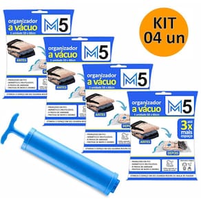 Kit 4 Saco a Vácuo 50x60cm Organizador Hermético para Mala de Viagem Guarda Roupa + Bomba Lançamento 2025 - Kit 4 Sacos a Vácuo Hermético 50x60cm Edredom Toalhas Roupas + Bomba Rosqueável - Material: PP, PE - Cor: Transparente - Tipo de Embalagem: Saco Plástico com Suporte - Marca: M5 Armarinhos - Espessura: 0,2mm - Contém: 4 unidades + 1 Bomba de Sucção Principais Características: - Reduz o volume, aumenta o espaço de armazenamento. - Reutilizável. - Hermético. - Impermeável. - Comprime. - Protege. - Organiza. - Super útil Para: Roupas, Toalhas, Almofadas, Cobertor e etc.. Instruções de uso: - Verifique o tamanho do saco a vácuo que necessita. - Coloque suas roupas volumosas, almofadas, etc... - Feche, deslizando o zíper. Verifique se estar bem fechado para garantir o resultado. - Encaixe o aspirador ou bomba de sucção do bocal do saco do vácuo. - Ligue o aspirador de pó, ele sugara o ar de dentro do saco, comprimindo o conteúdo. - Retire o aspirador de pó ou bomba e feche a tampa corretamente. - Reduz o espaço no seu guarda-roupa. Atenção: - As peças devem estar completamente limpa e secas. - Não guarde objetos pontiagudos, cortantes ou com arestas. - Não guarde couro. Cuidados: - Guarde em local seco, fresco, longe de umidade e ao abrigo do sol. - Mantenha longe de objetos pontiagudos, cortantes ou quentes. - Para evitar sufocamento, manter o saco plástico longe de crianças e bebês. Não usar este saco plástico em berços, camas, carrinhos e cercados. - Guarde estas instruções para futuras consultas. - Manter fora do alcance das crianças. : Marca: Não Informado Ean: 7894017025902