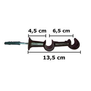 Características: Cor: Imbuia Composição: Polipropileno Para varões de: 19mm Peso: 80g Distância total da parede: 13,5 cm Distância entre o primeira varão e a parede: 4,5 cm Distância entre os varões: 8,5 cm Varão Não Incluso Validade indeterminada