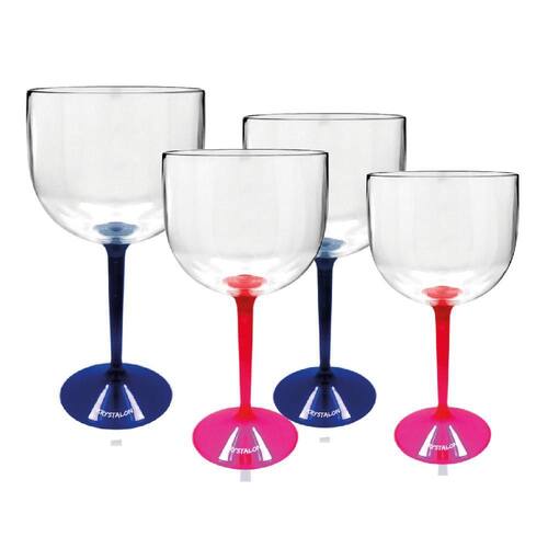 Kit 4 Taças Gin Bicolor Azul E Rosa Acrílico Ps A Taça Gin de Poliestireno Liso com Base colorida da KrystalON é perfeita para bebidas mais refinadas é resistente e durável, seja na sua festa, evento ou bar a Taça Gin da KrystalON sempre mantem seu estilo. Especificações: Material: Poliestireno Acrílico PS , Altura: 20 cm, Diâmetro: 10 cm, Capacidade: 550 ml, Cor: 2 Copos Transparente com base Azul e 2 Copos Transparentes com Base Rosa, Quantidade: 4 Peças