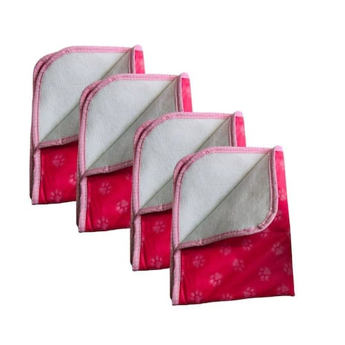Kit com 4 unidades do Tapete Higiênico Lavável Fê Pet , Fundo branco borda rosa patinha