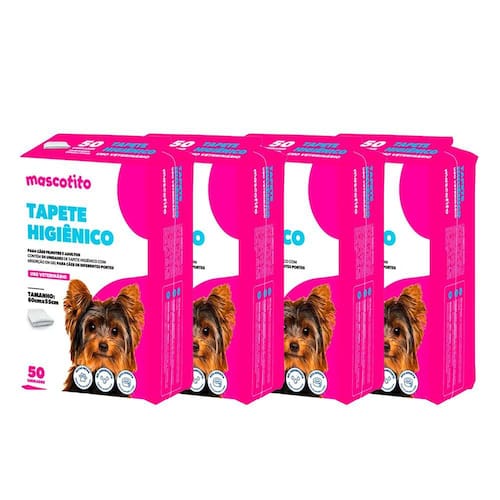 Kit 4 Tapetes Higiênico Mascotito 60x55cm C/50 Unidades - Indicado para cães; - Indicado para raças pequenas; - Alta tecnologia; - Tecnologia com extra gel; - Máxima proteção contra vazamentos; - Tamanho 60x55cm. O Tapete Higiênico Mascotito é indicado para cães de filhotes e adultos de pequeno porte. Ele possui uma alta tecnologia com extra gel, garantindo uma máxima proteção contra vazamentos. O tapete pode ser utilizado tanto em casa como em apartamentos. Desenvolvido com matérias de qualidade, resultando em um produto discreto, de fácil armazenamento proporcionando absorção na medida certa. Sua fabricação conta com 5 camadas de proteção e canais de absorção que garantem uma maior velocidade na absorção do xixi. Além disso conta com 4 fitas reposicionáveis. Modo de usar Tire o tapete da embalagem. Desdobre-o. Retire os papéis aplicados nos 4 cantos da parte inferior do tapete e fixe-o no chão com o lado dos adesivos voltados para baixo. Medidas aproximdas 60cm x 55cm.