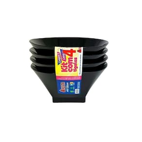Kit 4 tigela pote plástico cumbuca petiscos sobremesa 500ml Cor: preto Nosso empenho é procurar o que há de mais atual e funcional no mundo culinário e para organização da sua casa, priorizando sempre a qualidade e a versatilidade dos produtos. Kit 4 tigelas potes de plástico O kit com 4 tigelas é perfeito para servir petiscos, entradas, sobremesas, pequenas porções de saladas, caldos e muito mais Seu design apresenta uma base quadrada, que além de moderno, agrega ainda mais sofisticação a sua mesa As tigelas tem uma capacidade de 500ml, fabricadas em material resistente e livre de bpa, podendo ser levadas ao freezer e micro-ondas, auxiliando também no preparo de suas receitas.Disponível nas cores: branco, preto e vermelho, são 4 peças para você utilizar com a praticidade que você precisa. Medidas: Base quadrada: 6,5 cm x 6,5 cmDiâmetro superior: 14 cmAltura: 8 cmCapacidade: 500 ml Material:Polipropileno Conteúdo da embalagem:1 kit tigelas - 4 peças Gostou Esse pode ser seu aguardamos produto sua compra