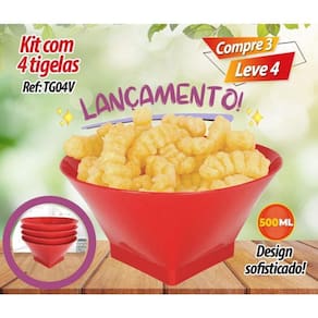 Kit 4 tigela pote plástico cumbuca petiscos sobremesa 500ml Cor: preto Nosso empenho é procurar o que há de mais atual e funcional no mundo culinário e para organização da sua casa, priorizando sempre a qualidade e a versatilidade dos produtos. Kit 4 tigelas potes de plástico O kit com 4 tigelas é perfeito para servir petiscos, entradas, sobremesas, pequenas porções de saladas, caldos e muito mais Seu design apresenta uma base quadrada, que além de moderno, agrega ainda mais sofisticação a sua mesa As tigelas tem uma capacidade de 500ml, fabricadas em material resistente e livre de bpa, podendo ser levadas ao freezer e micro-ondas, auxiliando também no preparo de suas receitas.Disponível nas cores: branco, preto e vermelho, são 4 peças para você utilizar com a praticidade que você precisa. Medidas: Base quadrada: 6,5 cm x 6,5 cmDiâmetro superior: 14 cmAltura: 8 cmCapacidade: 500 ml Material:Polipropileno Conteúdo da embalagem:1 kit tigelas - 4 peças Gostou Esse pode ser seu aguardamos produto sua compra