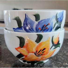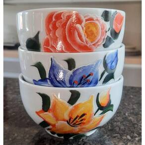 Peças de porcelana feitas de material de alta qualidade, queimados em alta temperatura, o que as torna fortes, resistentes e com alto brilho. Recebe Pintura artesanal à mão, o que as torna, além de úteis, peças decorativas que deixam qualquer ambiente mais bonito e moderno.
