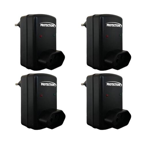 Kit 4 Protetores Elétricos Protection - Contra Surtos, Picos ou Quedas de Energia para Eletrodomésticos Geladeira Freezer Ar-Condicionado Máquina de LavarProteja seus eletrodomésticos contra danos causados por surtos, picos ou quedas de energia adquirindo um Protetor Protection e não corra mais o risco de queimar seus equipamentos.Protege seus equipamentos contra:- Surtos da rede elétrica- Picos de tensão elétrica- Baixa tensão elétrica- Elevação de tensão elétrica- Sobrecarga na rede elétricaNão é eficaz contra descargas elétricas de alta tensão provenientes de raios.Atenção Não é um estabilizador de voltagem, este anúncio é somente 220V.Funcionamento:Os LEDs Verde e Vermelho permanecem acesos quando a rede elétrica e o protetor estão funcionando corretamente e o aparelho está conectado. O LED Verde leva cerca de 8 minutos para acender quando o aparelho é conectado pela primeira vez. Caso a rede elétrica apresente problemas e saia dos padrões normais, o protetor desliga automaticamente o equipamento e o LED Verde se apaga. Após a estabilização da rede elétrica, o protetor aguarda cerca de 8 minutos e então o LED Verde é aceso, religando o equipamento.Informações técnicas- Tensão: 220V- Potência máxima: 2.200 Watts - Tomada 20 A e Pino 10 A Deve ser respeitada a potência máxima Dimensões- Altura: 7cm- Largura: 4,5cm- Profundidade: 3cm- Peso: 100gItens inclusos- 4 Protetores ElétricosGarantia de 12 meses