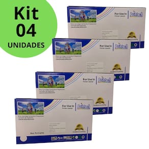 KIT 04 TONERS NOVOS E COMPATÍVEIS: Nossos toners são novinhos em folha, 100% lacrados e prontos para uso! Com chips novos, sua impressora reconhecerá o toner imediatamente, garantindo resultados impecáveis.